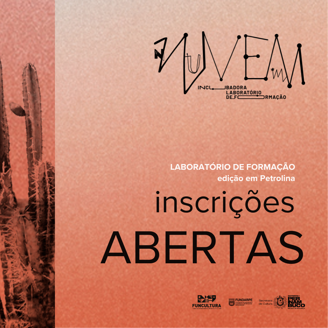 O projeto NUVEM – Incubadora e Laboratório de Formação Itinerante abre suas inscrições gratuitas para a segunda edição do LABORATÓRIO DE FORMAÇÃO, desta vez voltado para agentes culturais residentes em Petrolina, Sertão de Pernambuco. O prazo é até o dia 09 de maio!