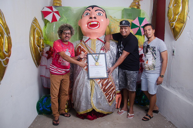 Quem também não pode errar é Jefferson da Silva Diniz, o ‘Testa’, bonequeiro há quinze anos. “Eu saía desde criança no Clube, mas na verdade eu tinha medo do boneco. Com o tempo eu fui gostando, pensando até em carregar ele, então, um dia o antigo bonequeiro faltou e Xôxo perguntou se eu aguentava, já nesse primeiro ano a gente foi campeão”, sorri ao lembrar.