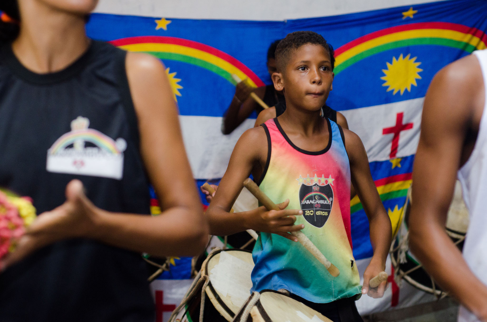 “O maracatu pra mim é isso. Não é só arte e espiritual. Eu prezo muito pelo social, é algo importante dentro do trabalho”, reforça Nilo, detalhando que os encontros acontecem toda quinta-feira, das 18h às 19h30. “São oficinas de percussão e danças populares, e quem quiser participar deve nos procurar porque existe um cadastro. Se for menor de idade, precisa de autorização de um responsável, apresentar a frequência da escola e ter um bom comportamento. É ainda onde entra a parte espiritual. Iemanjá é mãe e quer saber como os filhos estão. Não adianta ser bonzinho aqui e lá fora não, e isso vai acabar repercutindo contra todo mundo“, explica o presidente do maracatu, enquanto que do lado de fora da sede do Maracambuco cerca de vinte jovens se preparavam para começar um ensaio.