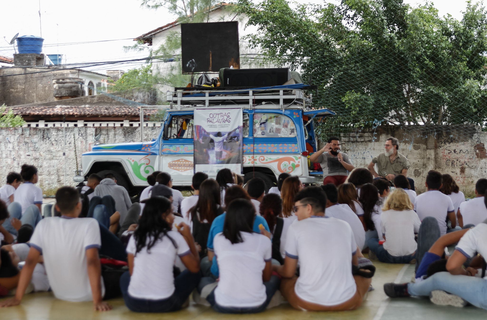 A edição do Outras Palavras costuma também levar cinema pra dentro da sala de aula e começou com a exibição de dois curtas. Um deles foi o primeiro episódio da segunda temporada do Pasárgada.doc, iniciativa da Coordenadoria de Literatura da Secult-PE, com a jovem poeta pernambucana Joy Carlu. O outro é o A Hora da Saída produzido por alunos da Escola Estadual Santa Paula Frassineti, durante o curso de iniciação ao audiovisual do projeto Cine Cabeça, com direção de Cynara Santos e Gabriela Freitas e roteiro de Lucas Cintra e Vitor Vinícius.