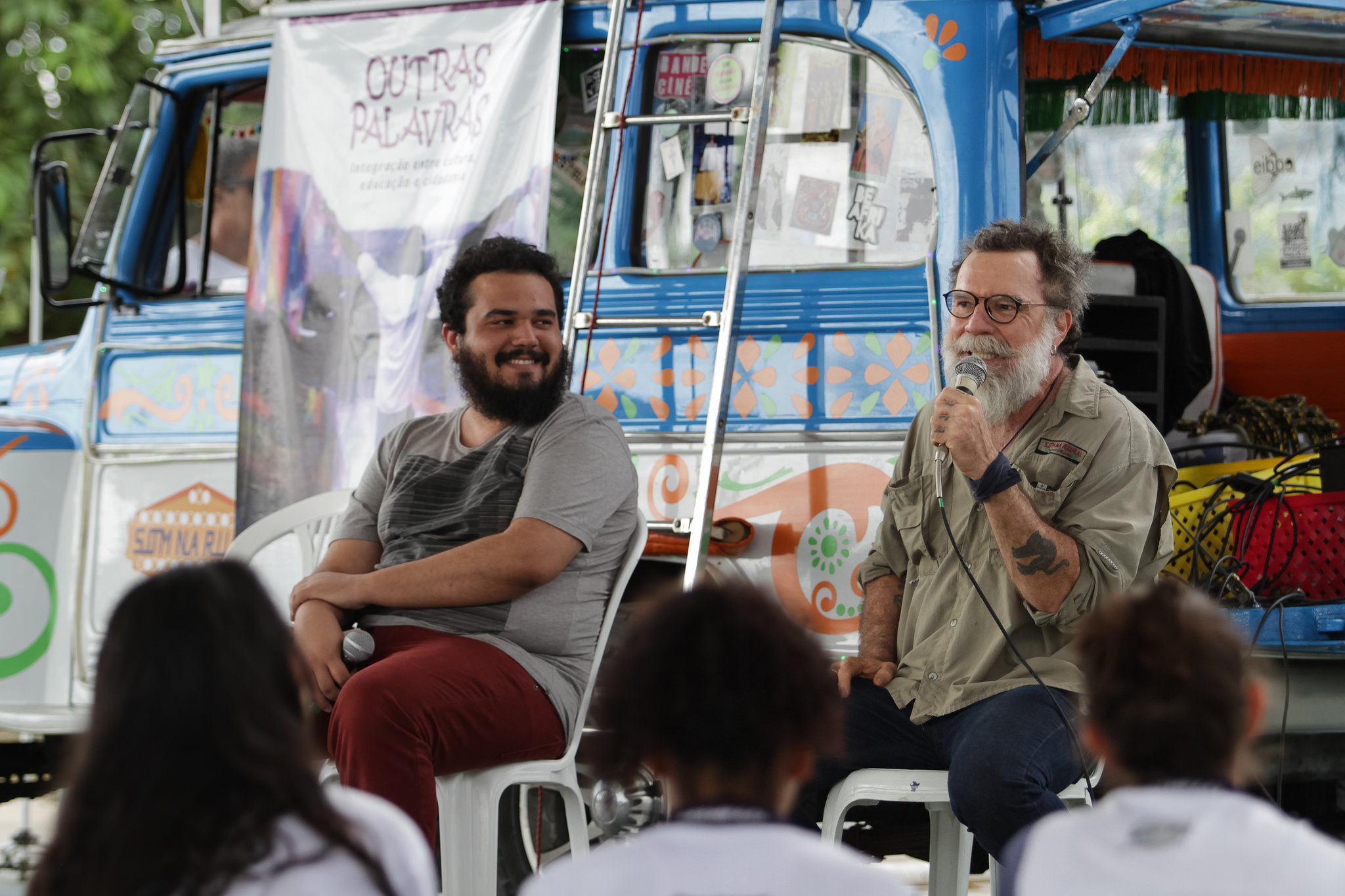 Pela primeira vez, o Som na Rural, um dos projetos de difusão da cultura pernambucana mais atuantes do estado, participou de uma edição do Outras Palavras, iniciativa da Secretaria de Cultura de Pernambuco e Fundarpe que tem a preocupação de levar cultura e arte pra dentro do ambiente escolar. A participação aconteceu nesta última quinta-feira (23), no EREM Professor Arnaldo Leão, em Maranguape, bairro no município de Paulista e território imortalizado em um canção do falecido músico Erasto Vasconcelos. Além do Som na Rural, o escritor Camillo José, vencedor do Prêmio Pernambuco de Literatura com o livro A Dakimatura Flutuante, conversou com os estudantes que participaram da ação.