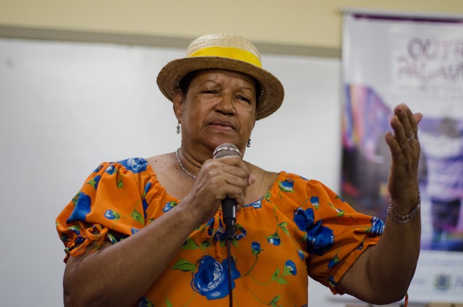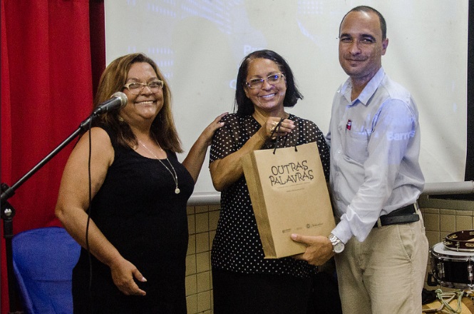 Após a conversa sobre literatura, na qual os estudantes também puderam fazer perguntas e interagir com o escritor, o projeto Outras Palavras contou com a contribuição da coquista Dona Aurinha do Coco, que falou sobre a sua trajetória na cultura popular pernambucana, iniciada no bairro de Amaro Branco, em Olinda. “O coco de roda é o que eu amo de paixão. Meu histórico está nele, não sei o que é ser herdeira de uma tradição, mas construí um grande legado que o meu neto de seis anos irá receber, que já é conduzido por minha filha Andreza e todos que fazem minha banda atualmente”, explicou Aurinha.