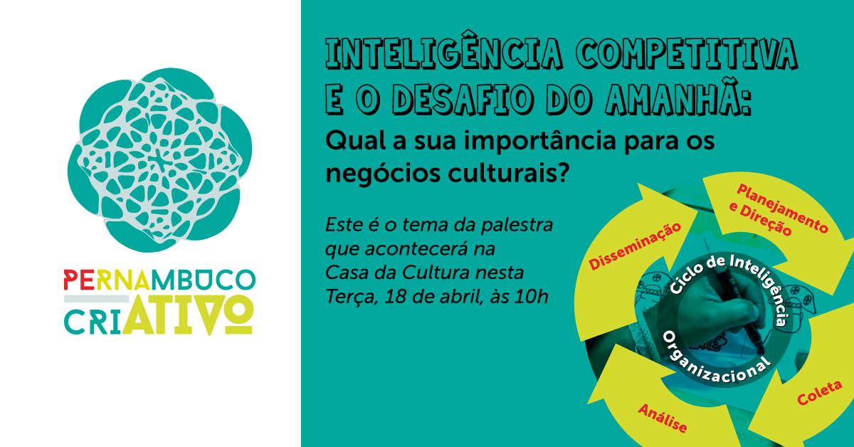 Com o propósito de aproximar gestores, empreendedores, realizadores e entidades culturais, a palestra “Inteligência Competitiva e o desafio do amanhã: Qual a sua importância para os negócios culturais?” irá discutir quais soluções criativas os negócios da cultura podem desenvolver para driblar o atual momento de crise econômica em que passa o país. A Inteligência Competitiva é uma atividade que busca coletar, analisar e aplicar, de forma legal e ética, informações relativas às capacidades, vulnerabilidades e intenções dos concorrentes de um determinado negócio dentro do mercado.