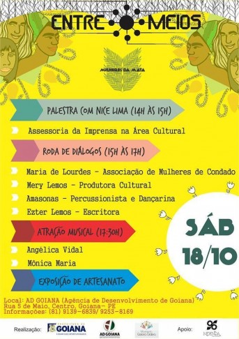 Visando contribuir para a projeção cultural e a prática da economia criativa destinada a mulheres da Zona da Mata Norte de Pernambuco, acontece neste sábado (18), na cidade de Goiana, a 8ª edição do projeto Entremeios, tendo o tema “Mulheres na Produção”. Com programação que se inicia a partir das 14h, no auditório da Agência de Desenvolvimento, o evento é gratuito e aberto ao público, contando com palestra, roda de diálogos, apresentações musicais e exposição de artesanato.