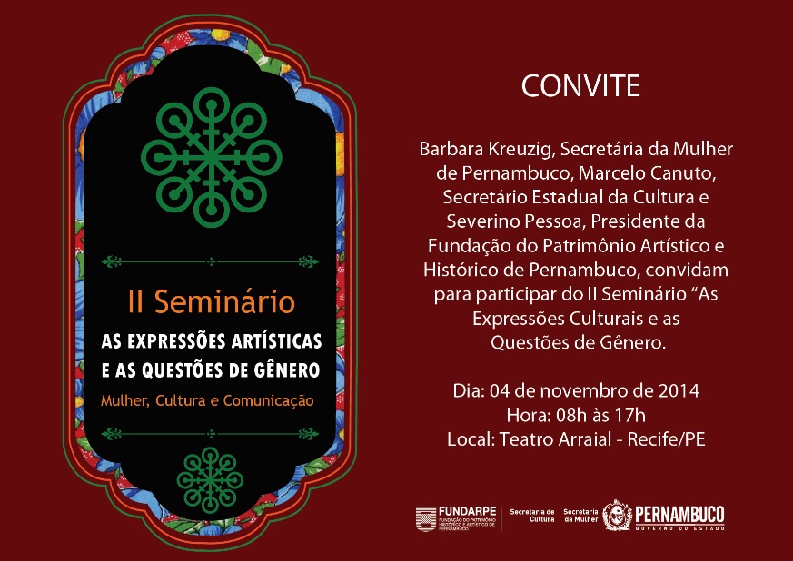 O Teatro Arraial, no Recife, recebe na próxima terça-feira (4), a partir das 8h, a 2ª edição anual do seminário “As Expressões Artísticas e as Questões de Gênero – Mulher, Cultura e Comunicação”. O evento, que é aberto ao público, objetiva refletir a atuação do gênero feminino envolvendo segmentos como mídia e economia criativa.