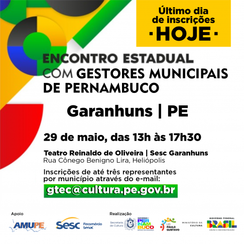 Encontro será realizado no Teatro Reinaldo de Oliveira, no Sesc Garanhuns (Rua Cônego Benigno Lira, Heliópolis, Garanhuns), no dia 29 de maio