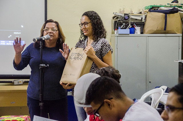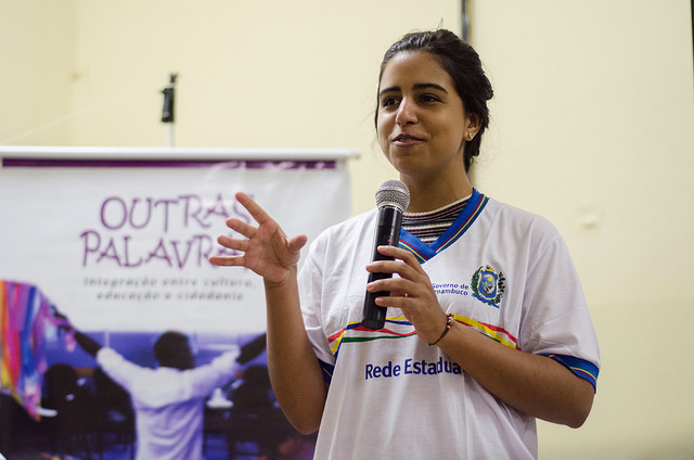 O quadro branco da sala de aula ainda está repleto do último assunto de química. Três metros de extensão por um de largura repleto de fórmulas, conceitos, exercícios e recomendação de tarefas para casa. Mas agora há instalado também um projetor e as cadeiras formam um círculo para receber os estudantes para uma atividade diferente. Eles vão chegando com o mesmo olhar de quem, horas antes, tentou prestar o máximo de atenção nas informações do professor. Vencendo o cansaço e aquela vontade de checar no celular, mais uma vez, a última postagem. Agora serão Outras Palavras. Sim, nenhum outro nome seria melhor para batizar este projeto que na sexta-feira, 5 de maio, chegou a sua 260ª edição numa escola pública de Pernambuco. Consiste em reunir, numa sala de aula ampla ou auditório, alunos, professores, escritores e artistas. Juntar Cultura e Educação, e sobretudo mostrar que uma empodera a outra. Fazer crer que ler não é nada careta, aliás, pode ser revolucionário. Voltar a fazer da escola o lugar de estímulo às novas descobertas.