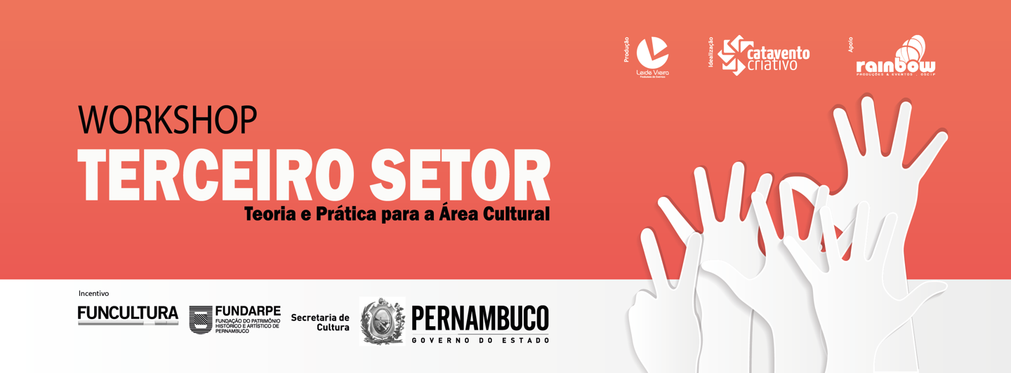 Direcionado para produtores culturais e profissionais de diversas áreas, atuantes em segmentos culturais ou contábeis, o workshop ‘Terceiro Setor: teoria e prática na área cultural’, oferecido pela Rainbow Produções & Eventos e a Catavento Criativo, está com inscrições abertas. A ação formativa, que possui incentivo do Governo de Pernambuco, através do Funcultura, é gratuita, e está dividida em duas turmas: a primeira acontece nesta sexta-feira (27), no horário das 9h às 17h; e a segunda turma, no mesmo horário, será realizada no sábado (28).