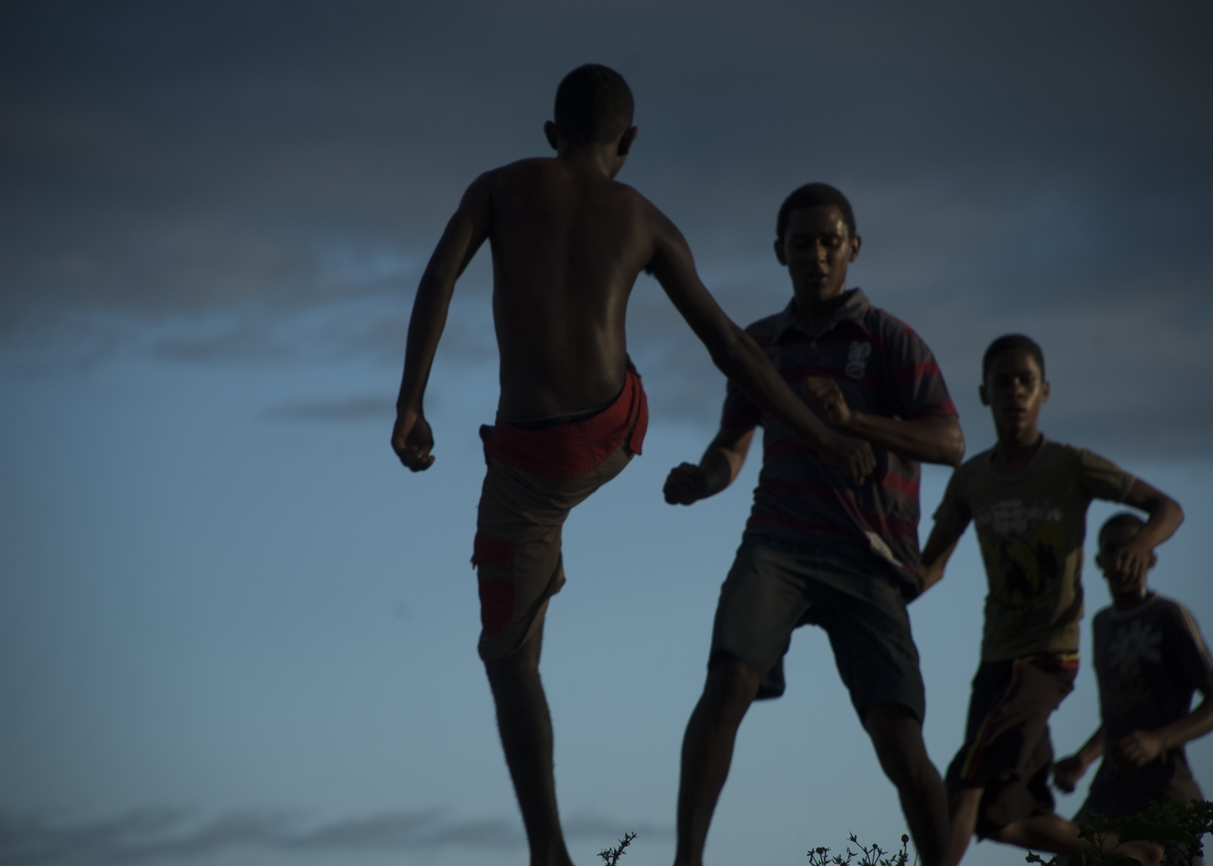 “Essa foto é parte do meu projeto ‘quilomBOLA’, que fiz para a Copa do Mundo e é todo sobre futebol em comunidades quilombolas. A imagem faz parte de um recorte específico que chamei de ‘Single Blue’ e o contraste das cores no céu azul do fim de tarde mostra o movimentos dos corpos. O futebol é uma resgate que faz parte do cotidiano deles e essa foto me chamou a atenção não só pelo ângulo, mas também porque já no visor da câmera nunca tinha visto uma coloração tão perfeita, mesmo sem edição”.