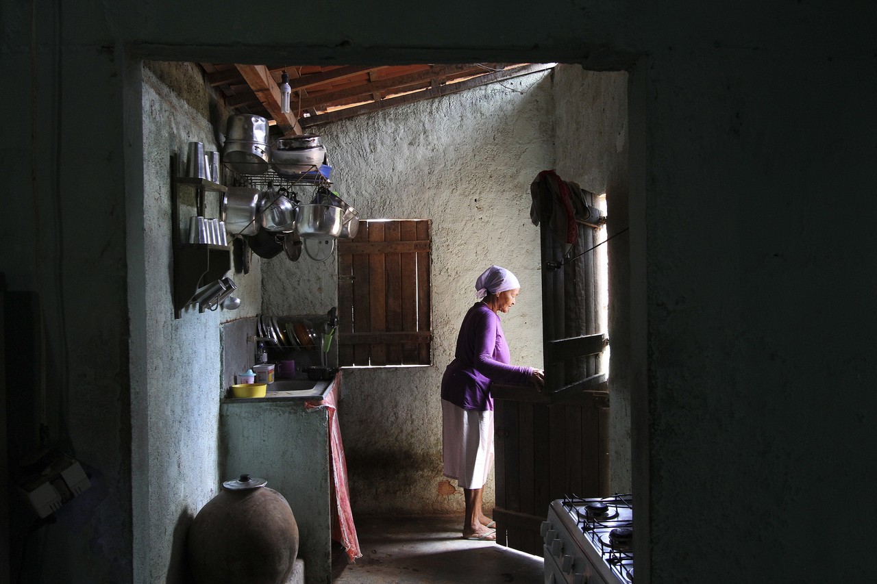 “Fui fazer uma matéria para a Revista Continente sobre parteiras de Tacaratu e essa senhora é parteira de lá. Geralmente, gosto de conversar antes de iniciar o ensaio e fiquei fotografando ela em casa para mim mesma, com meu celular, não era para a matéria. Me chamou a atenção a cozinha, porque era toda organizada e mostra a beleza que há na simplicidade do cotidiano. Ali tem tanta particularidade e tanta história da gente, uma cena tão clássica de interior”.