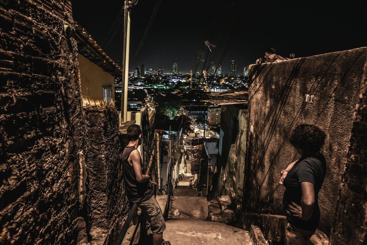 “Essa foto foi feita para uma matéria do Diario de Pernambuco, da época em que eu trabalhava lá. Era uma pauta sobre adolescentes que vivem à margem da sociedade e o texto também falava de como esses jovens ficavam mais vulneráveis em lugares com pouca iluminação. O que me chamou atenção nessa imagem mostra uma visão do Recife que evidencia o contraste entre o Morro e a Cidade”.