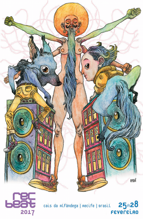 IDENTIDADE VISUAL - A cada edição, o Rec-Beat convida um artista para criar uma obra inédita representando a sua interpretação conceitual do festival. Este ano, o ilustrador e quadrinista pernambucano Ayodê França é o autor da ilustração que pautará a identidade visual do festival. Nela, Ayodê conta que buscou representar a importância da diversidade e experimentação do Rec-Beat, que sempre apresenta ao seu público uma experiência nova, fugindo do óbvio e subvertendo às expectativas.
