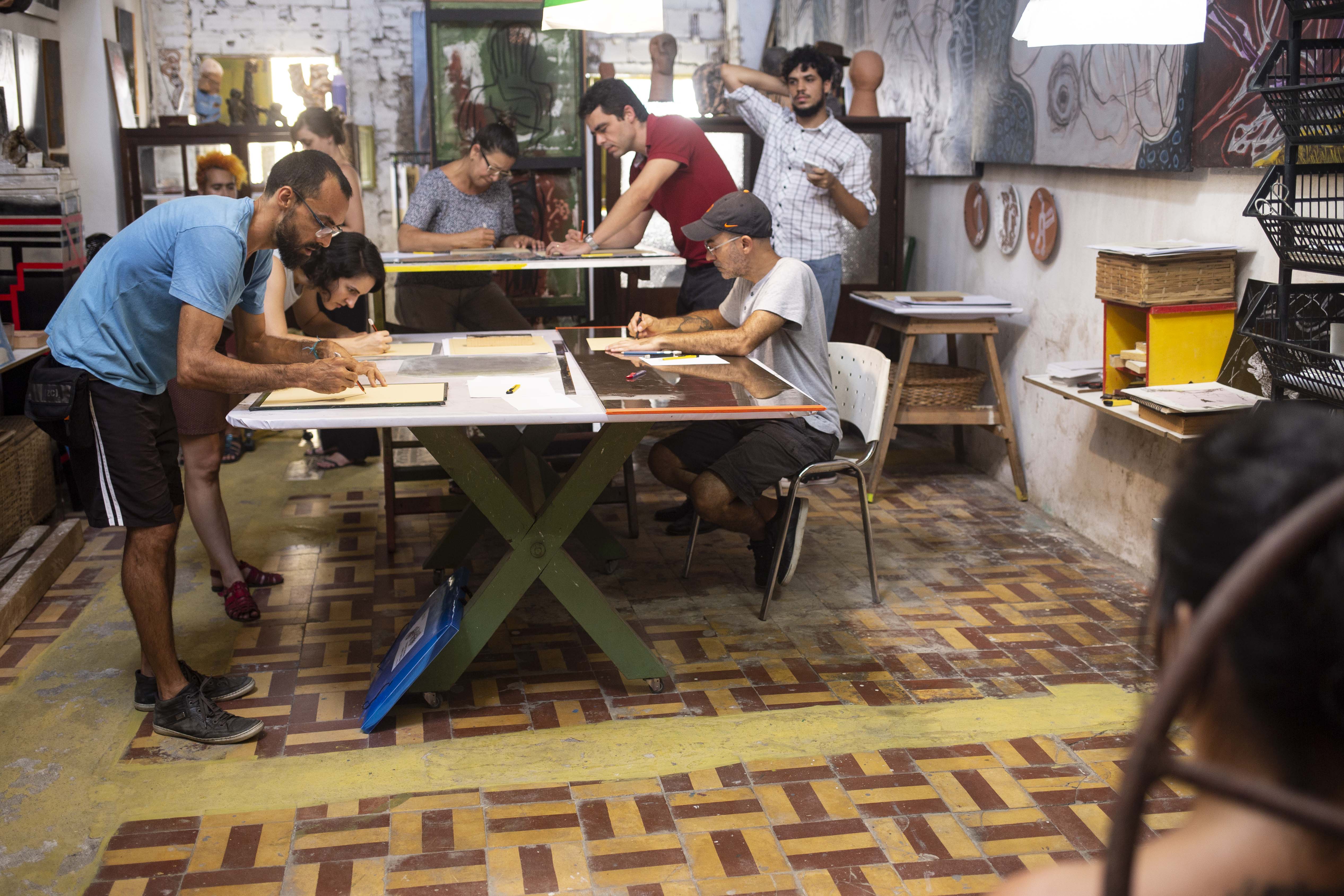 O Risco! Atelier Aberto foi um projeto que ofertou oito formações gratuitas em artes visuais que tinham como eixo central a performática do corpo e o registro gráfico. As ações foram ministradas pelos artistas Demetrio Albuquerque, Heitor Dutra, Ianah Maia, Nathália Queiroz, Rinaldo Silva, Sabrina Carvalho, Valeria Rey Soto e Vi Brasil. “O projeto tem sido um sucesso e conseguiu reunir um público bastante heterogêneo. Tivemos participantes que eram artistas e tivemos participantes que nunca tinham trabalhado com desenho ou com prática de modelo vivo”, completa Bruna. Para Vi Brasil, que atuou como modelo vivo e facilitou uma das oficinas, um ganho do projeto foi a integração da prática da modelagem nas ações formativas: “Acredito que a modelagem viva foi exercida como um estímulo criativo importante, o que reverberou nas minhas reflexões e na de todos que participaram e frequentaram o projeto”, argumenta.