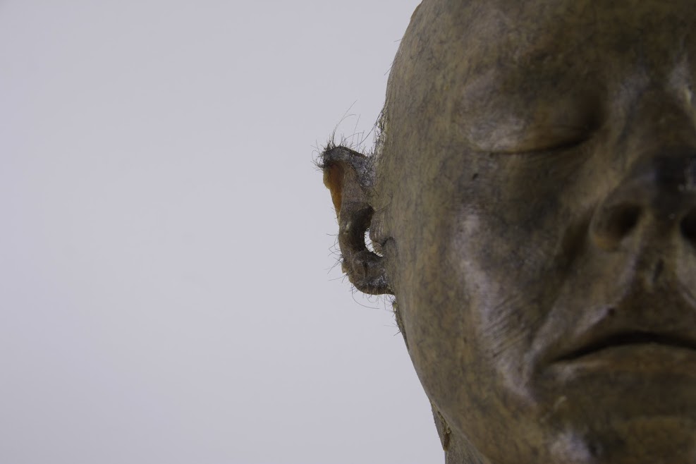 Dentre as peças integrantes está a Muda 1, réplica da cabeça da artista feita com cera e pelos de depilação