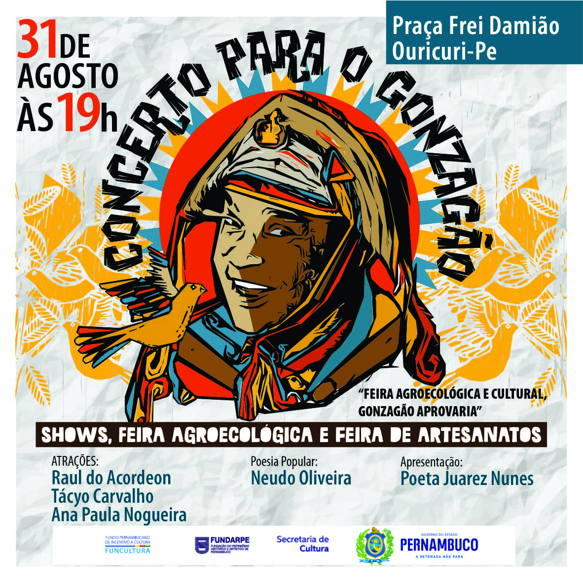 Localizada no Sertão Araripe, a cidade de Ouricuri recebe, nesta quarta-feira (31), a partir das 19h, a primeira edição do “Concerto para Gonzagão: Feira agroecológica e cultural, o Gonzagão aprovaria”. Com incentivo do Funcultura, o evento vai contar com música, poesia, artesanato e um espaço para produção agroecológica araripense.