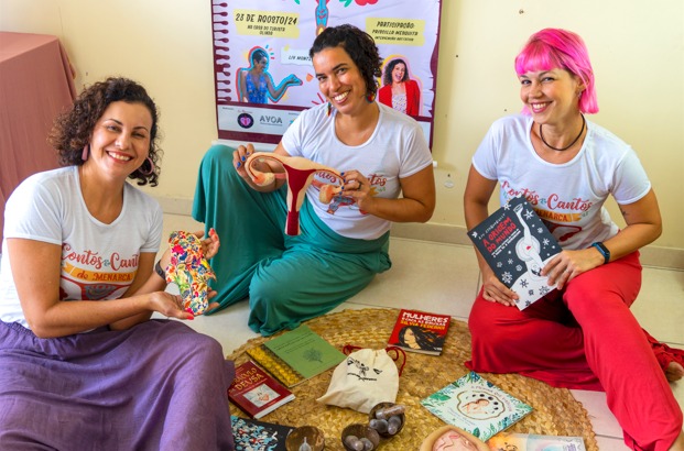 Milla Puntel, Liv Monteiro e Bruna Peixoto, artistas do projeto “Contos e Cantos de Menarca”