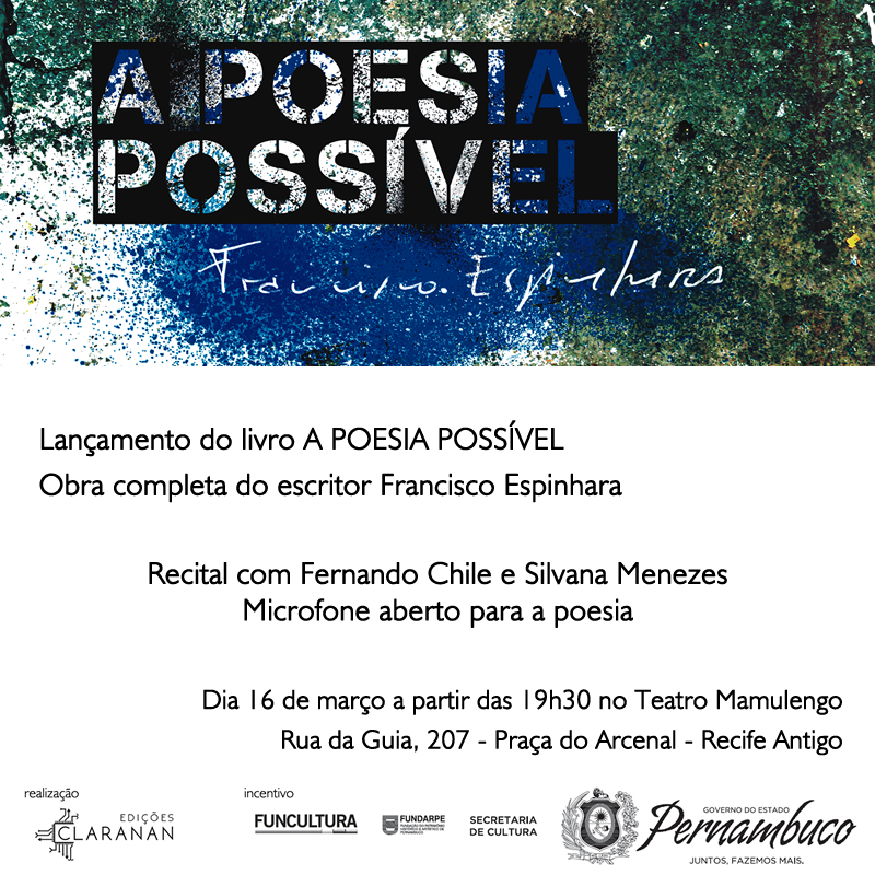 Com incentivo do Governo de Pernambuco, por meio do Funcultura, será lançada, nesta quinta-feira (16), a obra completa de Francisco Espinhara, um dos ícones da literatura da Geração 80 e do Movimento de Escritores Independentes do Estado. O lançamento acontecerá às 19h, no Teatro Mamulengo, no Recife antigo. A publicação, que recebeu o nome de ‘A poesia possível’, contou com a organização de Cida Pedrosa, projeto gráfico de Sennor Ramos e capa de Greg Vieira. Além dos livros publicados pelo autor , contempla também um vasto material inédito preservado pela família e amigos, e ainda textos encontrados em livretos, fanzines e jornais.