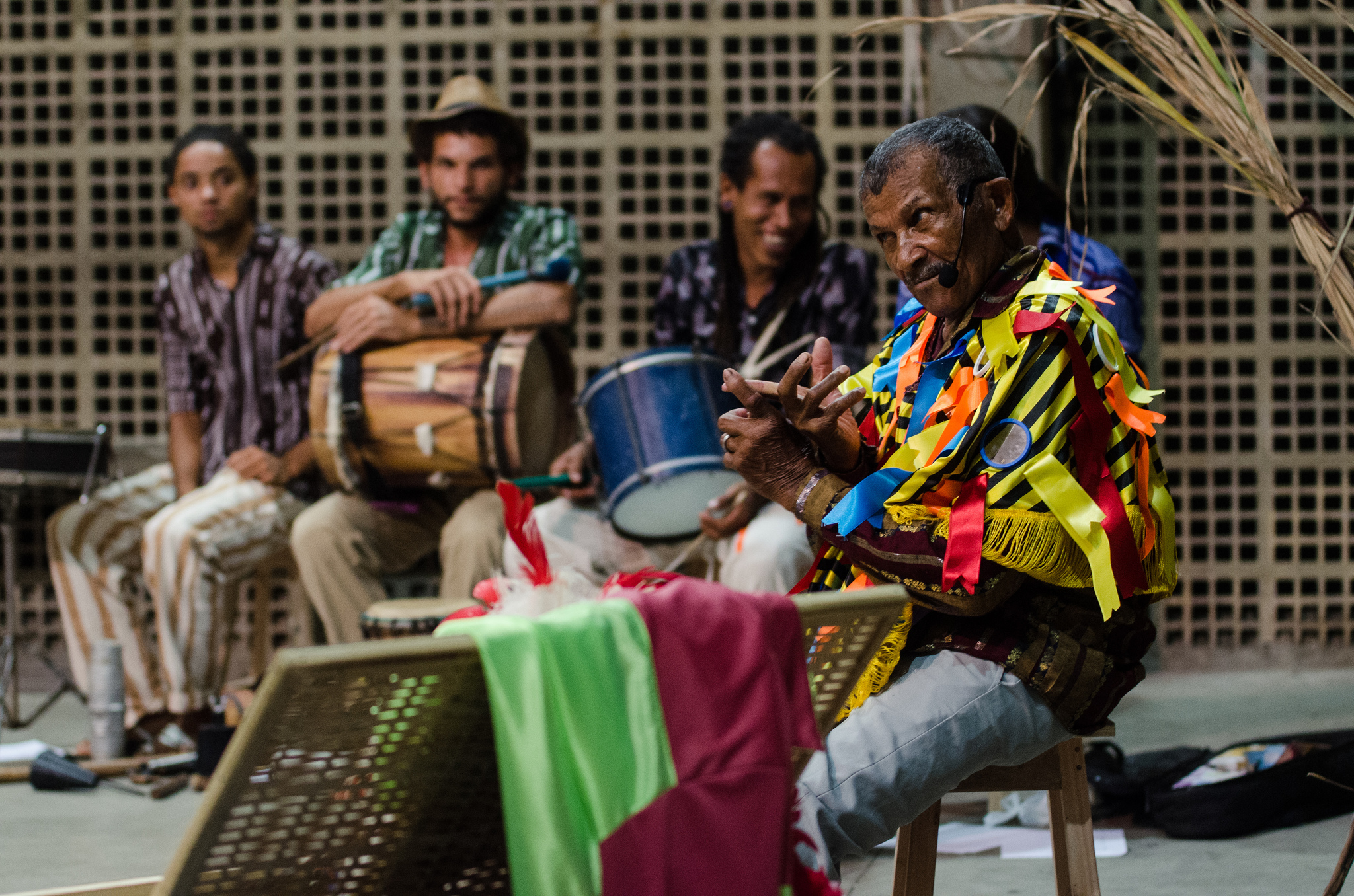 Durante a aula-espetáculo, Seu Martelo pincela um pouco de tudo da sua vida artística, que também teve passagem pelo Maracatu de Baque Solto