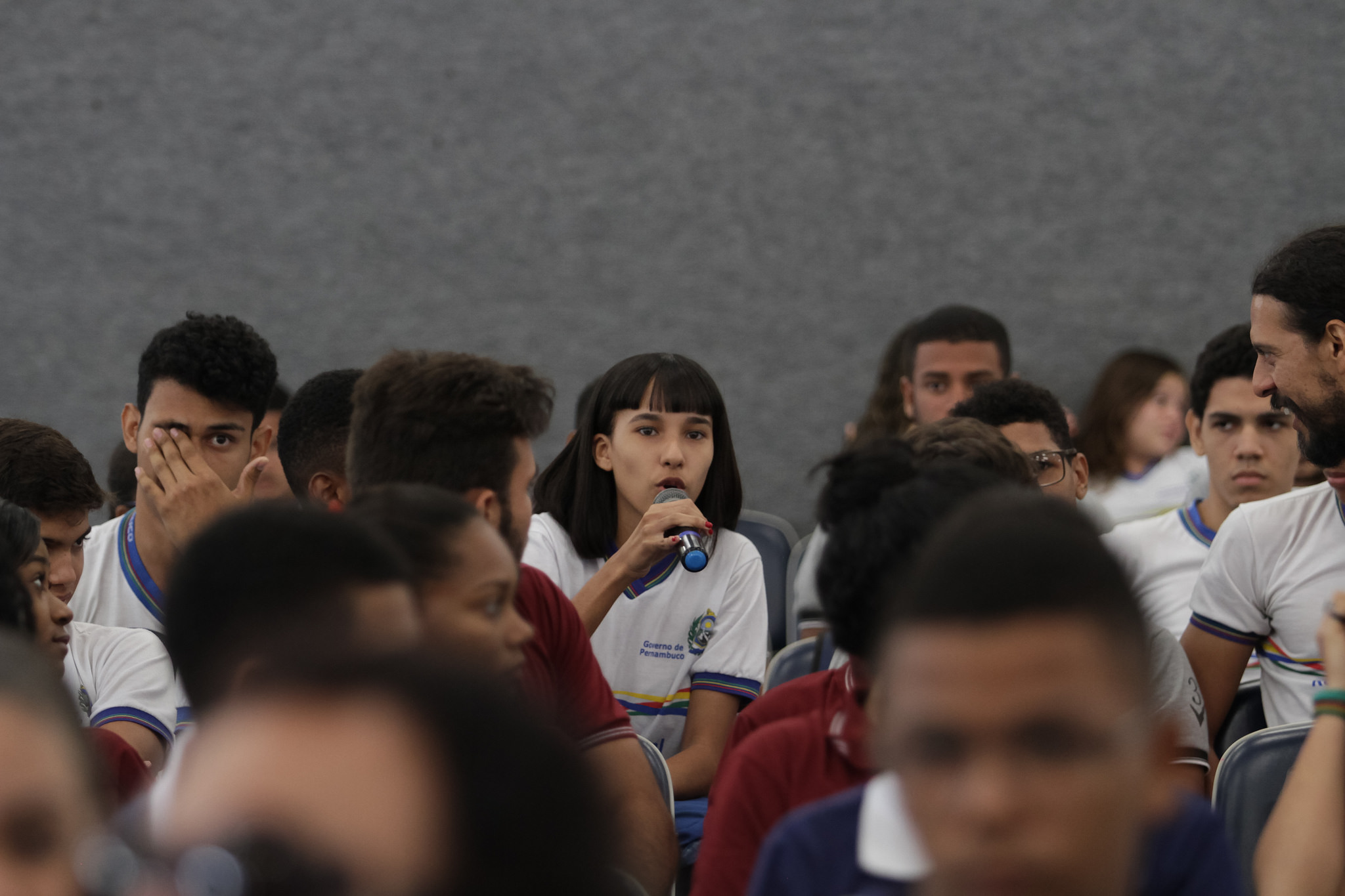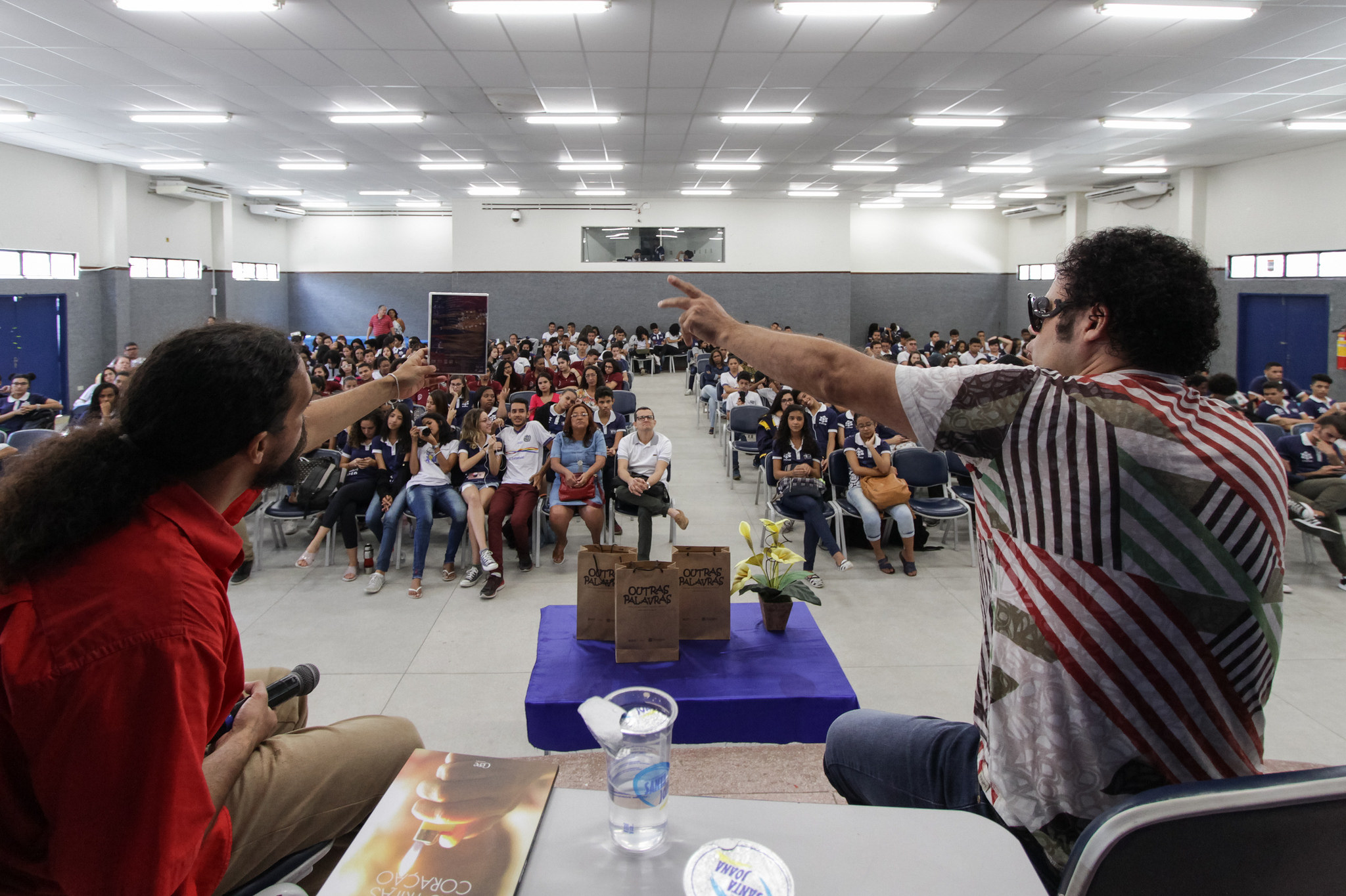 Cerca de 300 alunos das instituições de ensino EREM Nóbrega, EREM Clóvis Beviláqua, Escola Regueira e ETEPAM se reuniram no auditório da última para participar da edição do Outras Palavras da sexta-feira (11/05), que teve como convidados o escritor Mário Filipe Cavalcanti e o Maestro Forró. Contando com a colaboração dos alunos da escola anfitriã que comandaram a parte técnica do evento, a edição do projeto, que é uma ação da Secult-PE/Fundarpe, ficou marcada pelo intercâmbio também entre os artistas e os estudantes que participaram ativamente de debates intensos.