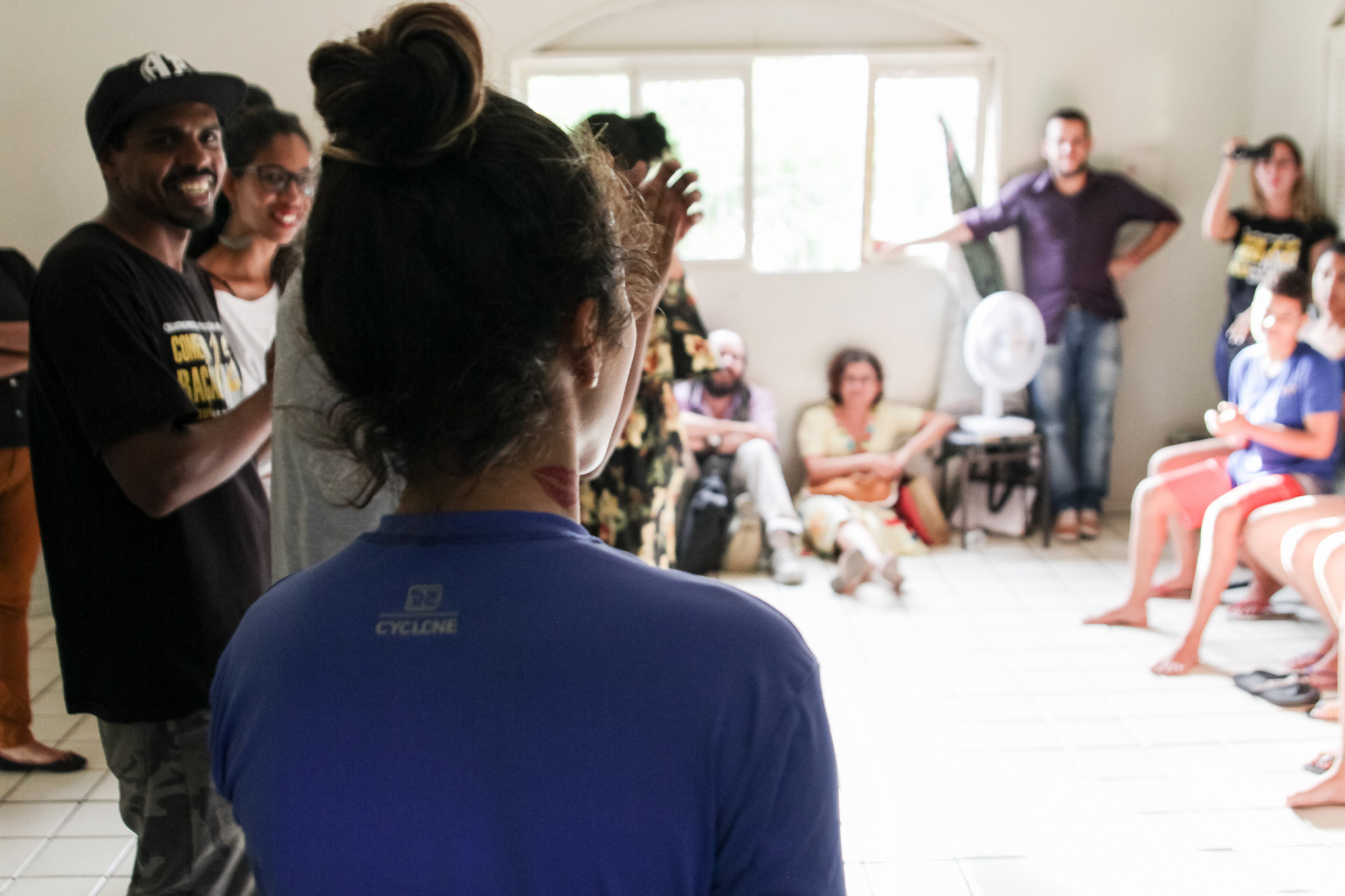 Outra jovem pegou o microfone e mandou uma rima de improviso sob a batida do beatbox do MC AF