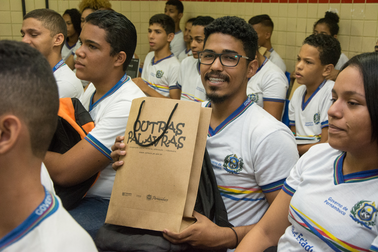 Wildson é um dos educadores que estavam presentes na primeira edição do Outras Palavras, realizado no Teatro Apolo. “Quando o conheci quis trazê-lo para nossa escola porque compreendi ali a importância desse projeto. Selecionamos então alguns estudantes que sabemos que gostam de leitura e de música para que a atividade fosse absorvida da melhor forma possível”, explicou o professor. Em seguida, foi exibido o curta A hora da saída, realizado por alunos da Escola Santa Paula Frassinete, do Recife, resultante das oficinas promovidas pelo projeto Cine Cabeça, uma parceria da Secult-PE com a Secretaria de Educação.