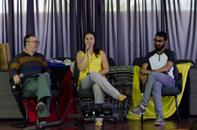 “Caio Fernando Abreu dizia que o combustível de quem escreve é a leitura. Então, se eventualmente tem alguém aqui que quer escrever ou enveredar pela literatura, que é uma das belas artes, a sacada é essa. A literatura propriamente dita”, argumentou Mário. “Tem dois momentos na escrita literária. O primeiro é o da escrita propriamente dita, esse momento é totalmente fechado na obra e a forma de criação é totalmente voltada para as sensações do escritor. O segundo momento é justamente a publicação. Tem escritores que dizem que não se importam com o que o leitor pensa. Deve ser mentira, porque no final das contas o público é importante na roda da literatura”, opinou.