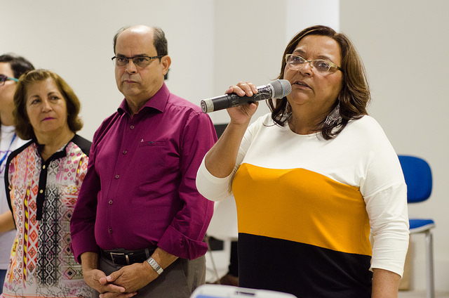Antonieta Trindade, acompanhada dos professores das instituições presentes durante o projeto