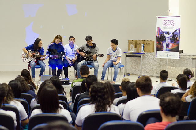 No intuito de estreitar as relações entre educação, cultura e cidadania, o projeto Outras Palavras, desenvolvido pela Secretaria de Cultura de Pernambuco e Fundarpe, chegou na quarta-feira (19) à Escola Técnica Estadual Governador Eduardo Campos, em São Lourenço da Mata. Além de estudantes da instituição, a atividade contou com público composto por cerca de 400 participantes, oriundos de turmas da Escola 10 de Agosto, EREM Conde Pereira, EREM Conde Corrêa, Escola Dona Leonor Porto, EREM Prof. Agamenon Magalhães e Escola Estadual Matriz da Luz.
