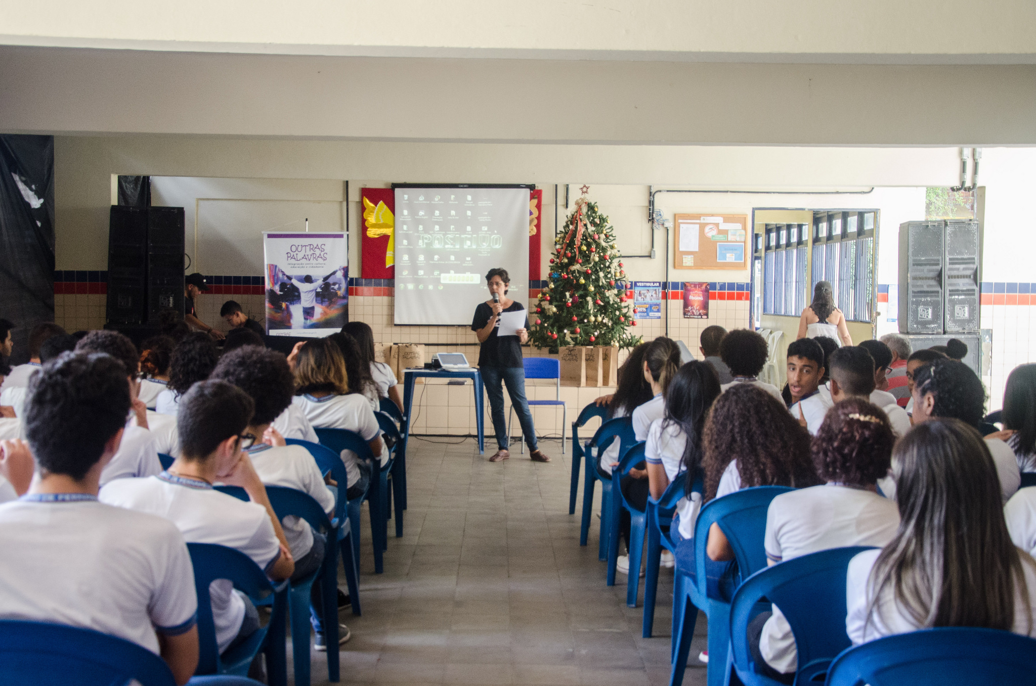 Buscando acrescentar à educação dos estudantes da rede pública estadual, o projeto Outras Palavras, realizado pela sistema Secult-PE/Fundarpe, teve mais uma edição de sucesso na última quinta-feira (14), quando aportou na Escola de Referência em Ensino Médio Ageu Magalhães, em Casa Amarela (Recife). Na ocasião, o escritor e historiador Karl Schurster e o músico Gilú Amaral conversaram com os adolescentes sobre a importância do consumo cultural não só como uma forma de compreensão da sociedade, mas também como um aprendizado tão fundamental quanto o das disciplinas escolares na formação de cidadãos. A iniciativa proporciona essa experiência de imersão na cultura desde 2015 e, até agora, já chegou a cerca de 400 escolas, tendo alcançado em média 9 mil alunos e doado aproximadamente 6 mil livros.