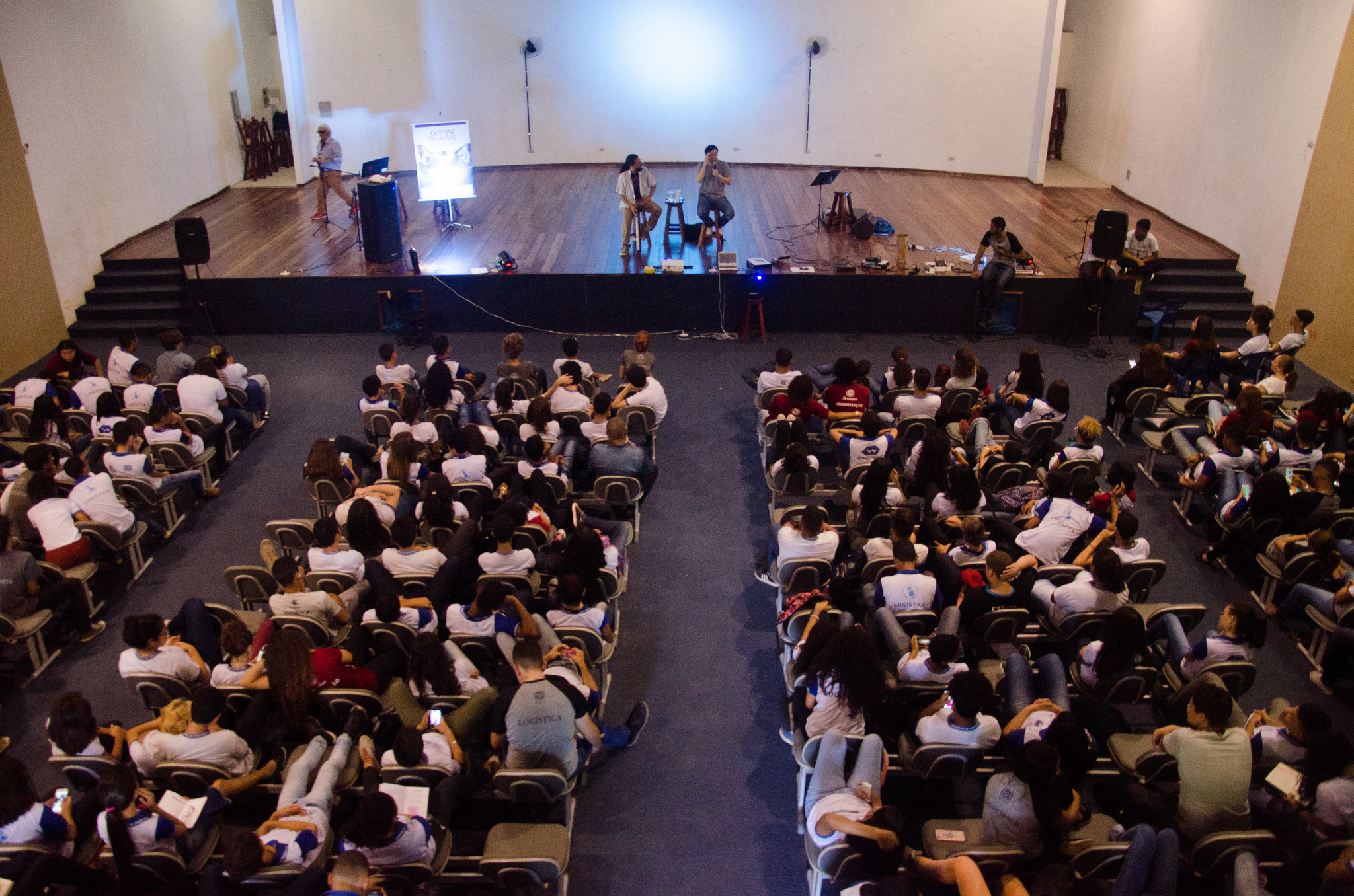 Este acompanhamento acaba que vira uma capacitação para os próprios alunos, que já começam a ter expertise em áreas específicas, como direção de palco e iluminação de ambientes, por exemplo. “Por ser uma escola técnica, a gente tem esse cuidado de fazer com que os jovens saiam daqui com uma noção básica sobre o que é organização, gestão da qualidade do serviço e atendimento ao público”, conta Biu, que geralmente conta com seis a oito alunos por rodada, que o auxiliam no apoio técnico, logística, atendimento e manutenção e montagem técnica.