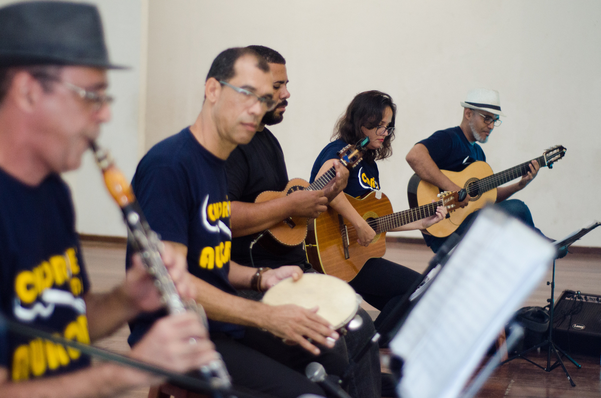 A satisfação em ver tudo funcionando ficou estampada no rosto destes estudantes ao longo da edição, como na hora da apresentação dos Chorões da Aurora, cuja iluminação e som foram ajustados pelos próprios alunos. “Somos um grupo de choro, que é um gênero musical brasileiro com origem a partir da junção entre a cultura europeia e africana no século XIX, com a vinda da corte portuguesa e de escravos para o Brasil”, detalhou Erilson Oliveira, professor de clarinete e músico do instrumento na banda – acompanhado de violão, cavaquinho, bandolim e pandeiro. No repertório, clássicos de Valdir Azevedo e Jacob do Bandolim, finalizando com a clássica Madeira que Cupím Não Rói, de Capiba.