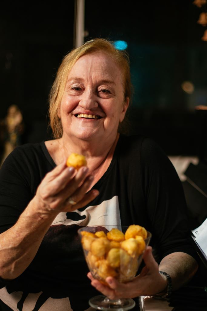 Caso da pianista virtuosi Ana Lúcia Altino, que compartilhou no livro uma receita de doces filhós, uma sobremesa que remete às memórias e sensações nostálgicas da sua infância. “É uma especialidade gastronômica portuguesa muito comum na época do Natal e é feito com farinha de ovos, frito em óleos vegetais e polvilhado com açúcar. Não era muito comum ter filhós na sobremesa. Geralmente era feito em ocasião especial e era uma briga eterna para a divisão igual entre todos”, relembra.