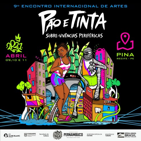 Começa nesta sexta-feira (9) o 9º Encontro Internacional de Artes Pão e Tinta que, neste ano, será transmitido pelo YouTube. O objetivo do evento é falar das Sobre-Vivências Periféricas durante a pandemia. O encontro, organizado por jovens do Coletivo Pão e Tinta da comunidade do Bode (Pina/Recife), representa a culminância de um projeto que promove estratégias de geração de renda, de fortalecimento da identidade cultural, da autoestima e do sentimento de pertencimento comunitário através da arte urbana, de oficinas de inclusão social e digital, rodas de diálogo, assim como a revitalização de espaços comerciais, educativos e outros marcados pela violência dentro do território. Essa ação de graffiti homenageou neste ano, Dona Silvonete Santos, mãe do grafiteiro Pedro Stilo e dos jovens Lucas e Mateus Santos, que foi alvejada por uma bala perdida há 19 anos. Em 2021, o beco em a moradora foi vitimada, ganhou cores e vida com os painéis de graffiti feitos pelos artistas do coletivo, passando a ser um novo espaço cultural dentro da favela.