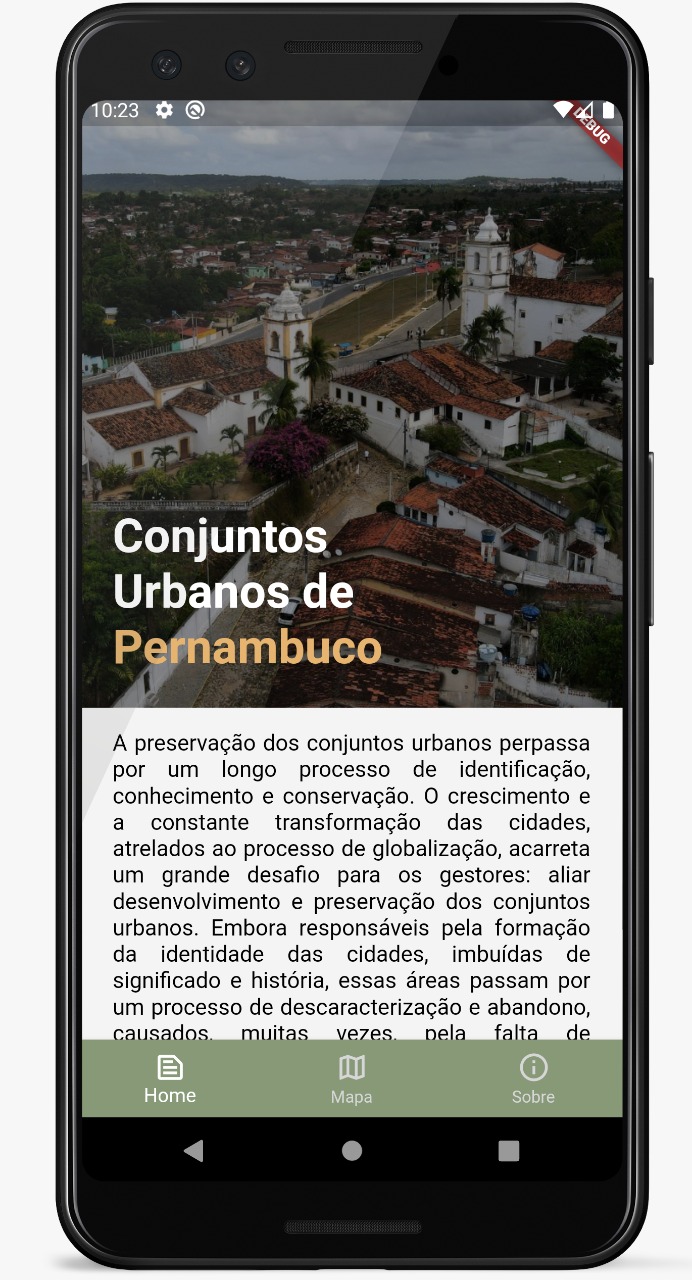 Contemplado pelos recursos da Lei Aldir Blanc em Pernambuco, o aplicativo gratuito “Conhecer para preservar: Conjuntos Urbanos de Pernambuco” vai permitir aos seus usuários conhecer, através da tela de seu dispositivo móvel, seis grandes conjuntos urbanos reconhecidos do Estado: Brejo da Madre de Deus, Goiana, Igarassu, Recife, Triunfo e Olinda.