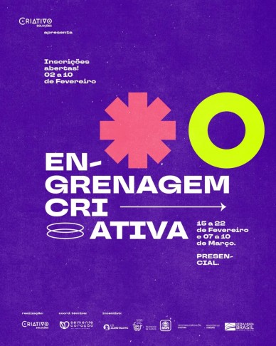 O curso Engrenagem Criativa tem como objetivo oferecer formação, em caráter de atualização, para artistas, técnicos e profissionais que atuam no setor das artes cênicas no Recife. A iniciativa, que conta com os recursos da Lei Aldir Blanc em Pernambuco, tem foco na vida prática dentro da produção, operação, gestão, montagem, desmontagem e uso adequado de salas e espaços onde espetáculos e performances acontecem. A atividade será realizada pela Criativo Soluções, empresa recifense do setor das artes cênicas, com a coordenação geral do produtor cultural Danilo Carias, em parceria com a marca Semente Coração, da iluminadora e artista da dança Natalie Revorêdo. As aulas serão realizadas de 15 de fevereiro a 10 de março de 2022, no Centro de Educação e Cultura Daruê Malungo, e as inscrições terminam nesta quinta-feira (10) e podem ser feitas no link: bit.ly/EngrenagemCriativa-22.