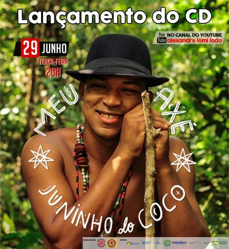 Jovem artista da cultura popular pernambucana, Juninho do Coco lança terça-feira (29), às 20h, com uma live no YouTube (youtube.com/AlexandreLOmiLOd%C3%B2), o primeiro CD de sua carreira “Meu Axé”. Contemplado pelos recursos da Lei Aldir Blanc em Pernambuco, o álbum reúne faixas autorais, além de canções da sua avó, Dona Vitória Ferreira, uma mais célebres das mestres coquistas da comunidade do Amaro Branco, em Olinda.