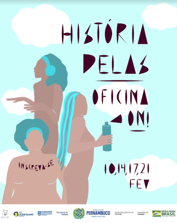 As oficinas culturais do projeto “História Delas” realizarão uma imersão na produção cultural e artística negra e periférica de Recife, buscando vivenciar essa cena a partir de trajetórias, referências e processos de criação de artistas e produtoras negras que constroem essa paisagem artística e cultural. O objetivo é localizar as mulheres negras como agentes principais da produção artística e cultural negra contemporânea de Recife; vivenciar através do diálogo com agentes culturais e artistas um pouco de suas referências, motivações, processos, e promover seus trabalhos.