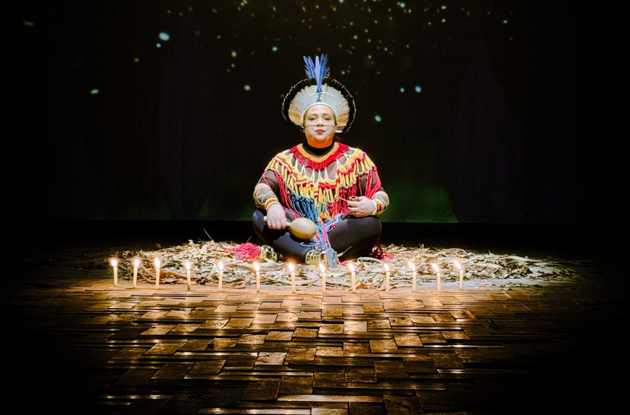 Através de projeções e recursos de holograma, animação gráfica e Inteligência Artificial, os cenários do TEA se transformam em locais subjetivos fora do espaço-tempo, nos quais a artista reencontra seus ancestrais e suscita reflexões sobre amor próprio, aceitação, pertencimento e religiosidade.