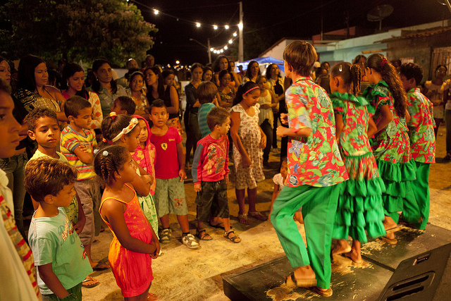 Crianças do Coco da Malhada fazendo o trupé (Foto: Daniela Nader)