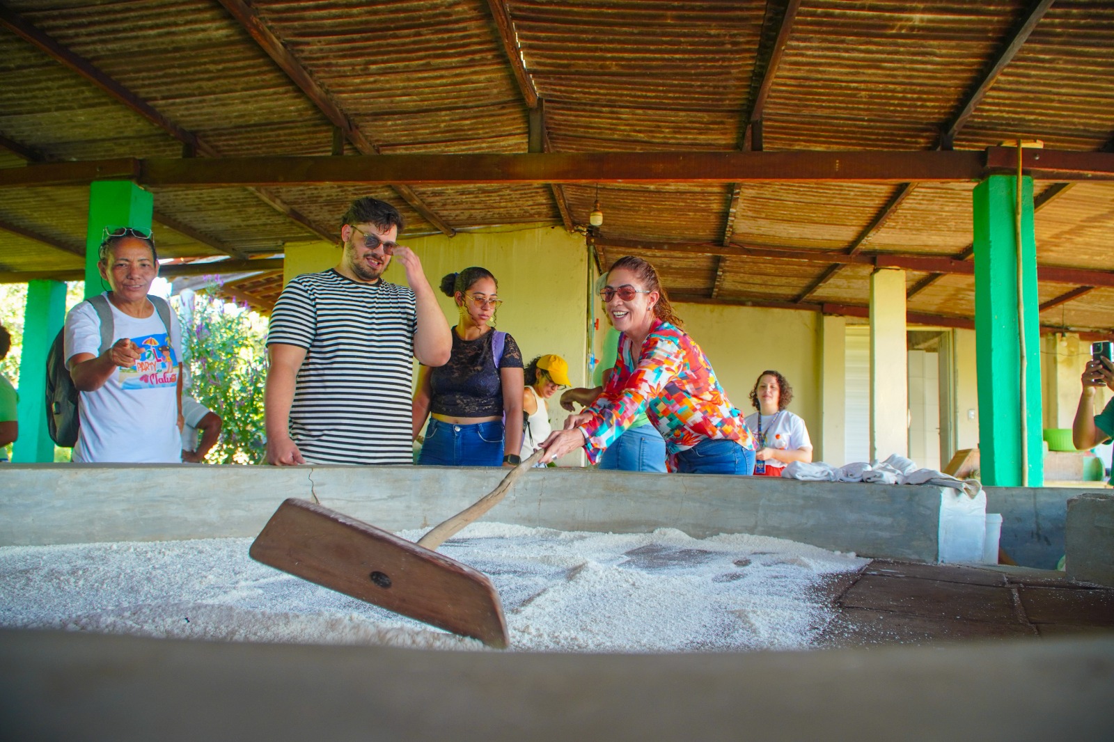“A mandioca é a base de diversos outros produtos da nossa alimentação, como a tapioca, o bolo Souza Leão, o beiju, a farofa. Comidas que fazem parte do nosso cotidiano e por isso nós estamos aqui hoje para ver todo o processo do plantio, a colheita e do processamento da mandioca transformando nesses produtos. Ter um entendimento completo desse ciclo faz parte do nosso papel de salvaguardar esse bem”, complementou a coordenadora de Gastroomia da Secult-PE, Dianne Souza.