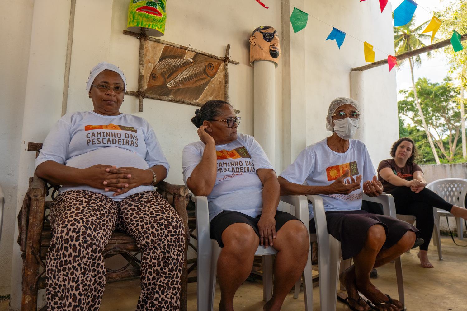 Mulheres como Coquinha, nascida e crescida na Ilha e que, desde os 10 anos, sai diariamente para pescar. Ela aprendeu com sua mãe e hoje aos 58, continua na ativa, vivendo dessa atividade e integrando o projeto Caminhos das Pescadeiras, da ONG. “A minha vida é a pesca. Ostra, marisco, siri…A gente aqui vive disso, é nossa sobrevivência. Se tirassem a pesca iriam tirar um pedaço da gente, é muito importante para todos nós, não só por ser nossa fonte de renda, mas também pelo que representa. Pesar é bom demais! É muito cansativo, mas também dá muita satisfação. Quando chego na praia esqueço de todos os estresses e quando termino de pescar estou renovada. O mar, o vento, a areia, tudo me faz um bem danado, que não tem preço”, ressalta Coquinha.