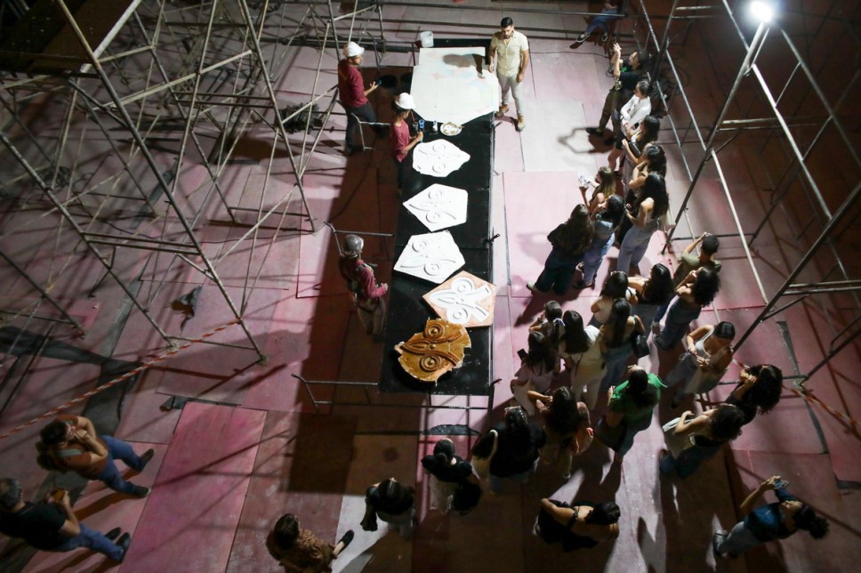 Na Semana do Patrimônio Cultural de Pernambuco, estudantes universitários de arquitetura, de quatro instituições do Recife, tiveram a oportunidade, nesta quinta-feira, de conferir de perto a obra de restauro do forro decorado do Cinema São Luiz, no Centro da Cidade. A ação, promovida pelo Governo do Estado, por meio da Fundação do Patrimônio Histórico e Artístico de Pernambuco (Fundarpe), buscou aproximar alunas e alunos da prática do restauro.