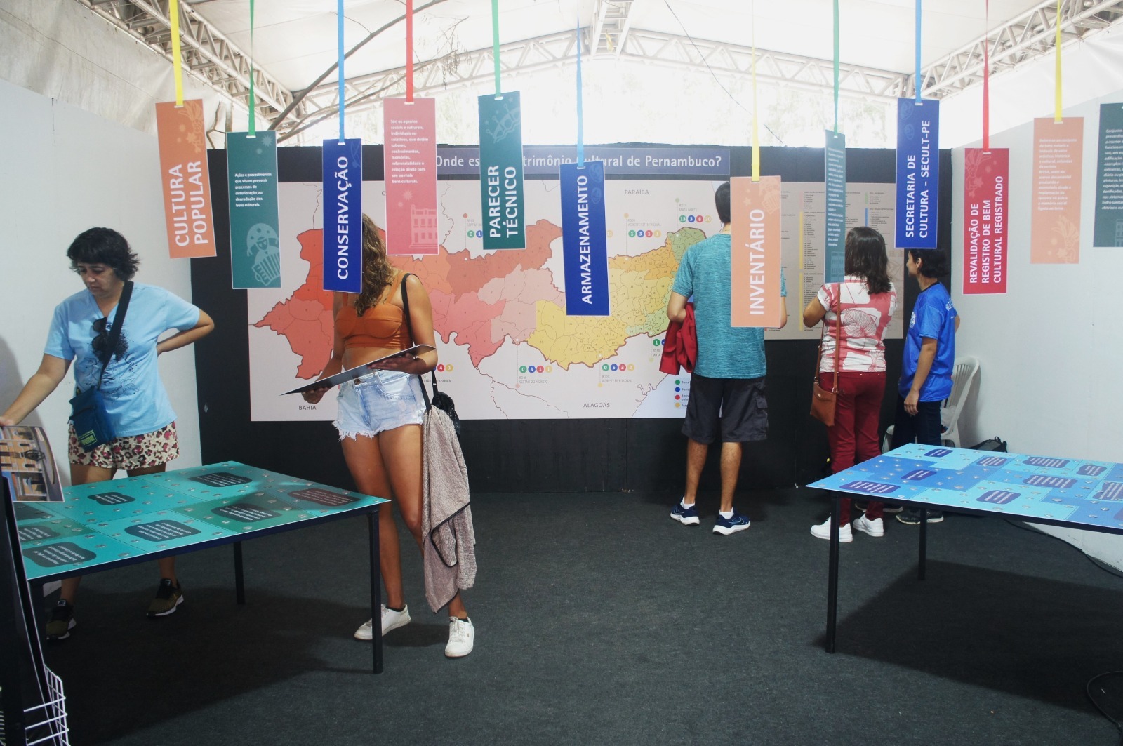 A exposição foi construída a partir da publicação digital da cartilha “Patrimônios de Pernambuco: Materiais e Imateriais” (link para acesso aqui), em comemoração aos 50 anos da Fundarpe, com lançamento no Festival de Inverno de Garanhuns (FIG), em 2023. A mostra é composta por painéis com textos e imagens, vídeos e quebra-cabeças dos Patrimônios de Pernambuco, que geram interatividade com os visitantes. O espaço tem caráter educativo e visa difundir a diversidade dos bens culturais reconhecidos, além de estimular ações de preservação e salvaguarda de outros bens ainda não identificados.