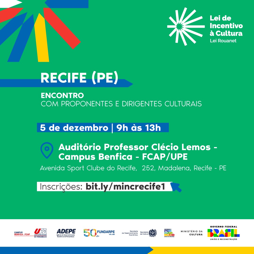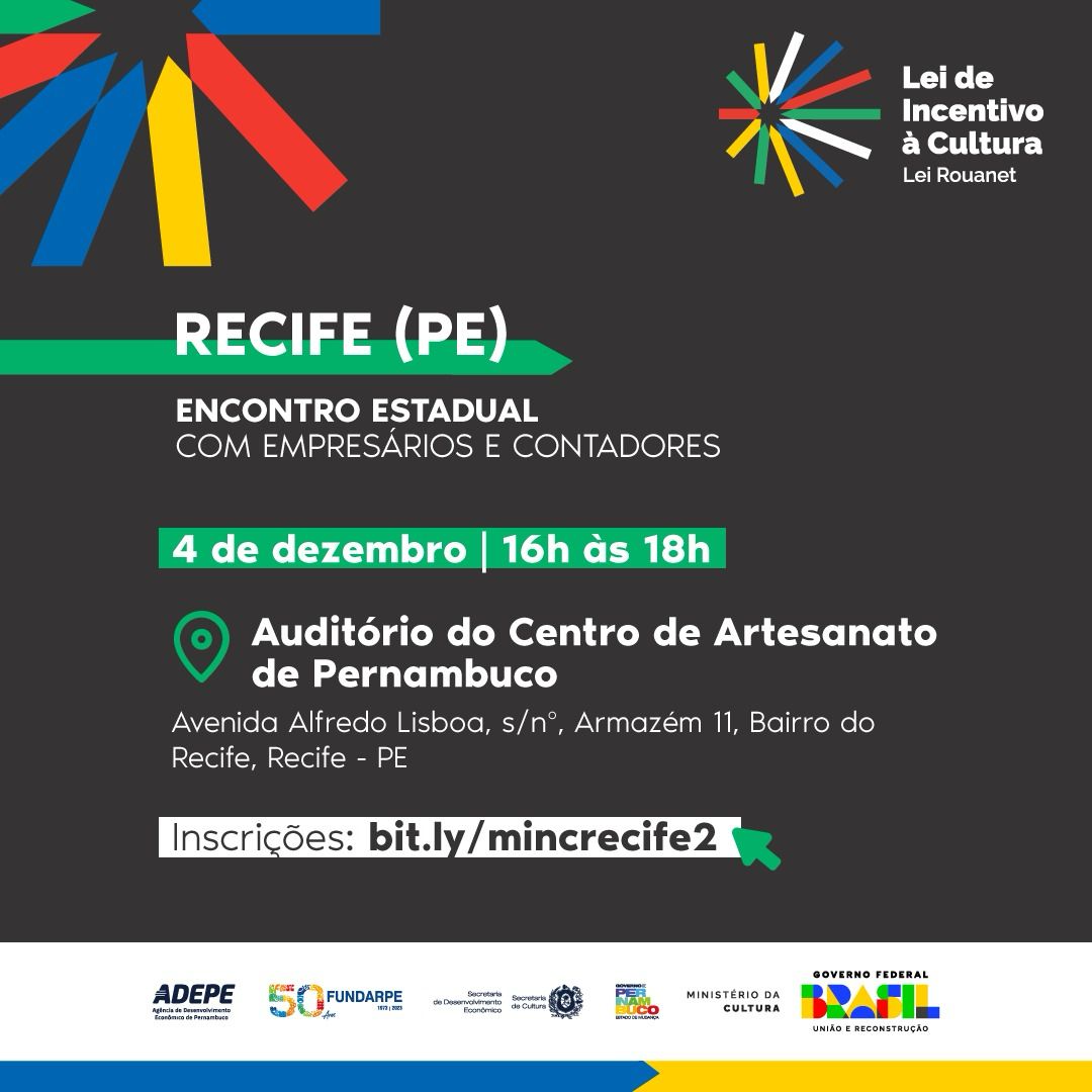 No dia 04, o encontro será voltado para empresários e contadores e acontecerá no auditório do Centro de Artesanato de Pernambuco, Recife Antigo, das 16h às 18h. Já no dia 05, o evento será com empreendedores e fazedores de Cultura, na FCAP (Madalena), das 9h às 13h. As inscrições são gratuitas e podem ser feitas através do link: Inscrição: Dia 04/12 e Inscrição: Dia 05/12.