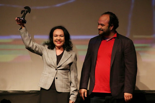 Na sequência, viria um dos momentos mais bonitos da noite. A homenagem à atriz pernambucana Magdale Alves. Nos últimos anos, ela figurou como peça fundamental em diversos filmes pernambucanos, a exemplo de “Amarelo manga”, “Baixio das bestas”, “Árido movie”, “Eletrodoméstica”, “Deserto feliz”, entre tantos outros, que demarcam esse momento de retomada, com grande força, do cinema produzido no estado e que vem ganhando cada vez mais repercussão dentro e fora do país. “É uma honra poder ser, fora de Pernambuco, uma referência no que diz respeito ao cinema. Isso porque o nosso cinema é, sim, reconhecido no Brasil inteiro e em outros países. Sinto-me feliz por ser uma partezinha dessa engrenagem que reúne uma equipe imensa, como diretores de arte, figurinistas, maquiadores, e tantos outros que dão a cara do nosso cinema”, agradeceu Magdale, ao receber a homenagem.