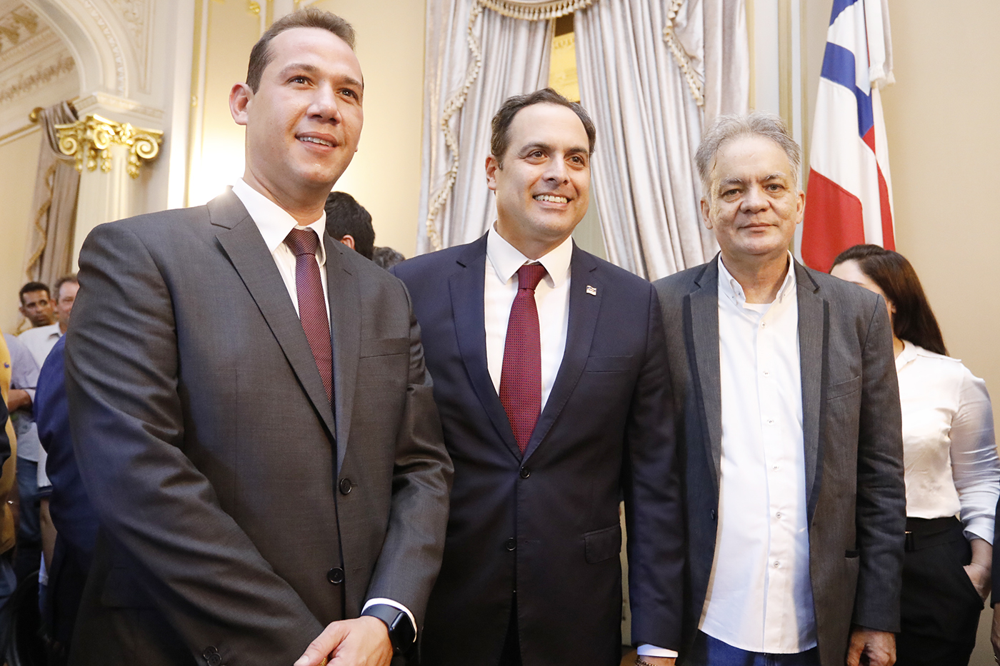 Edilázio Wanderley, Paulo Câmara e Oscar Barreto na cerimônia de posse dos novos gestores do Estado