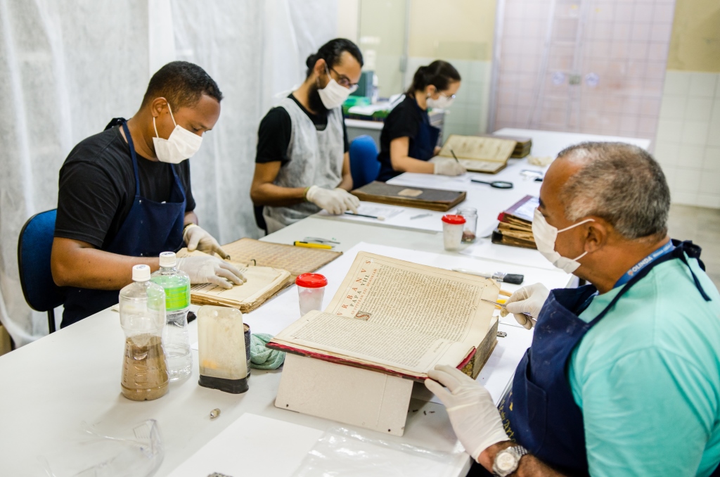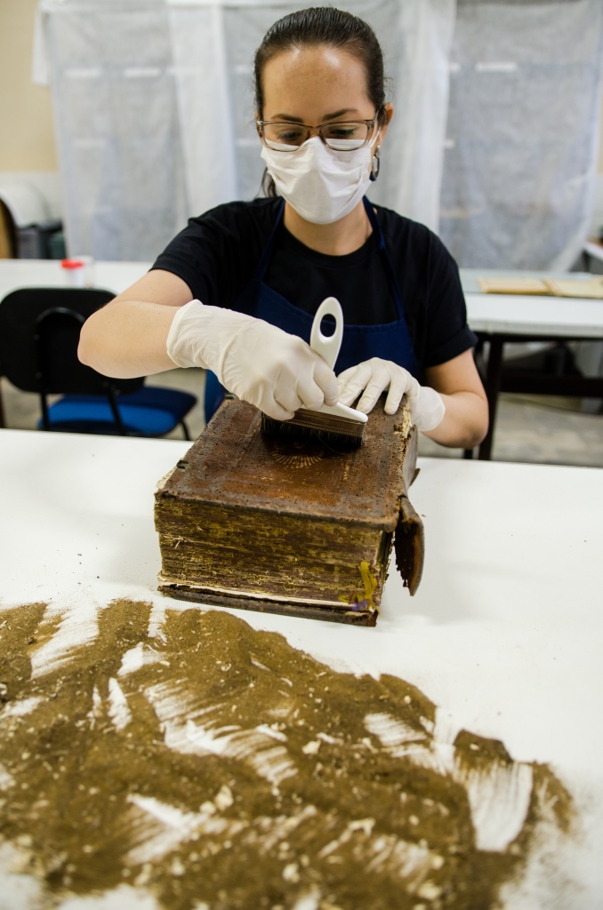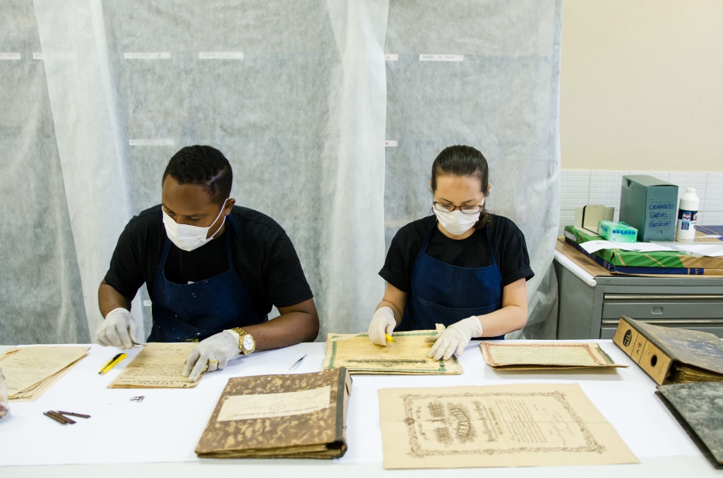 “Fizemos uma parecer de ação efetiva técnica e especializada inédita, seguindo todo o mandamento, todas as normas da UNESCO e do Conselho Nacional de Arquivos (Conarq)”, detalha Débora Mendes, que trabalha ao lado de uma equipe formada por conservador, restaurador, paleógrafo, historiador e auxiliar técnico. Nesta primeira fase de trabalho, os profissionais se esforçam em reunir, catalogar, separar por período e assunto, além de higienizar, acondicionar e armazenar os documentos de modo a prolongar seu tempo de vida útil e condições de manuseio para consulta no Arquivo.
