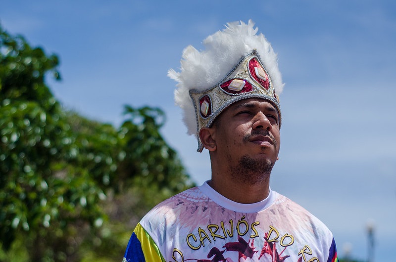 SONHO COM CABOCLO – Desde a sua fundação, a Tribo Carijós teve seis presidentes. Depois do estivador Antônio da Costa, o mais famoso foi Jefferson Roberto Cosme dos Santos, que pegou o caboclinho em 2011, depois que a agremiação estava há 13 anos sem conseguir desfilar no Carnaval (mas não por isto, acabada). Também foi por meio de mensagem de uma entidade que Jeferson soube que deveria assumir o grupo. Ele conta que teve um sonho, no qual participava de um ritual religioso e, num dado momento, o caboclo aparecia e apontava o dedo para ele.