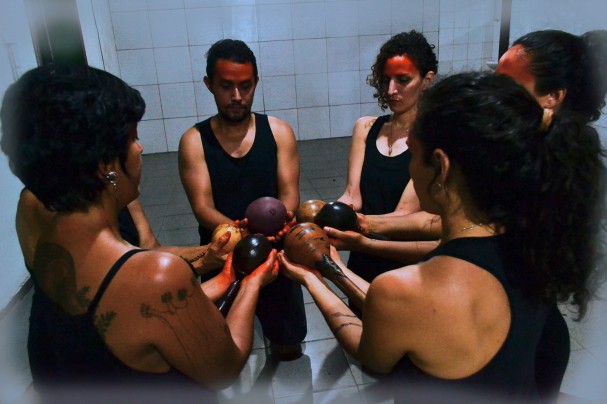 Para fazer esta conexão entre o lado do caos e a essência das pessoas, o que nos faz bem, vão sendo introduzidos em cena alguns elementos durante a performance, tais como instrumentos musicais (maracas, tambor, chocalho) e a pintura dos corpos com tinta feita de urucum. “São elementos simbólicos, que fazem da ritualização em coletivo e da energia contente da rebeldia a força para abrir novos caminhos”, ressalta Taína Veríssimo, produtora e uma das performers do Totem.