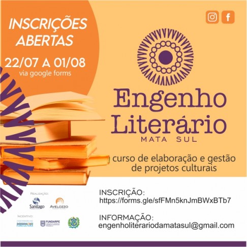 Vitória de Santo Antão e a região da Mata Sul do estado de Pernambuco vão receber o projeto cultural – Engenho Literário, um curso de elaboração e gestão de projeto culturais com ênfase em literatura. Com incentivo do Funcultura, o curso é gratuito e voltado para todos os públicos, com aulas presenciais aos sábados, com duração de julho a novembro de 2022. As inscrições deverão ser feitas pela internet, via Google Forms. As inscrições para seleção vão do dia 22 de julho a 1º de agosto. São 40 vagas para as 23 cidades da região da Mata Sul de Pernambuco. Todo o curso é gratuito. As aulas acontecerão de agosto a novembro o Centro de Criações Culturais da Vitória, em Vitória de Santo Antão.